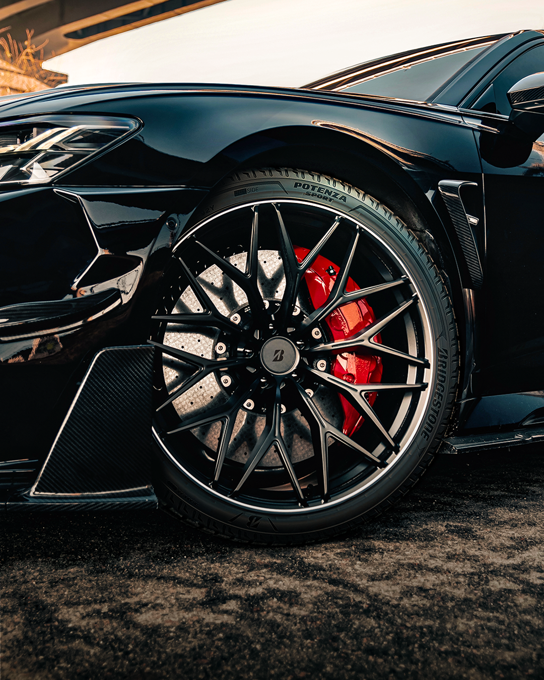 Auto usando llantas Bridgestone